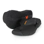 Cabedal preto feito de tira com trama exclusiva projetada com tecnologia de cintos de segurança e pesponto interno na cor laranja Kenner