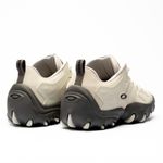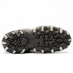 O solado em borracha é aderente e resistente à abrasão, aumentando a durabilidade e tração do tênis.