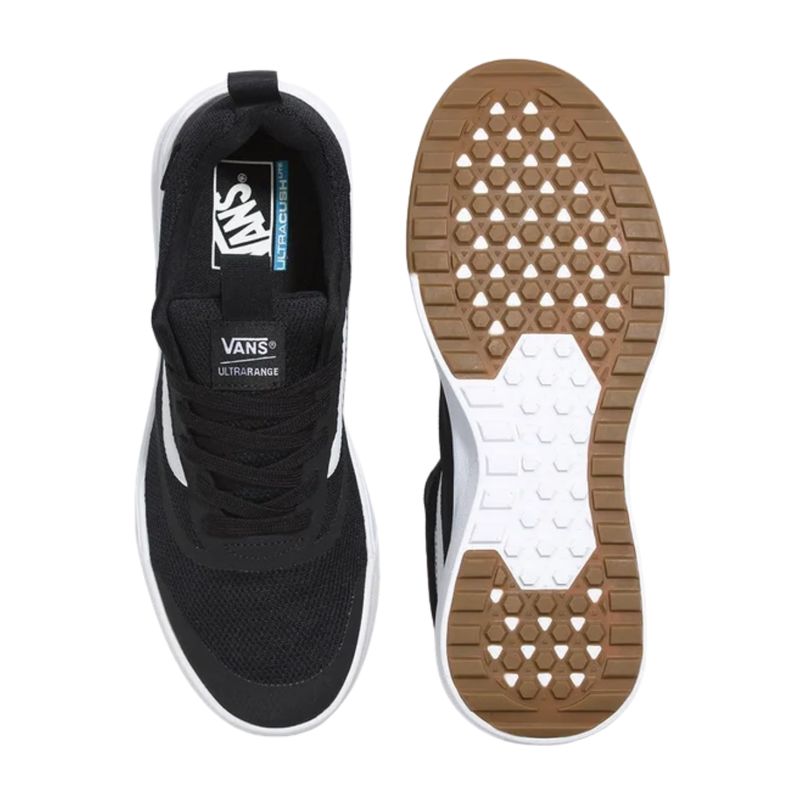 Uma nova adição à família Vans, o UltraRange Rapidweld foi a solução para a necessidade de nossos atletas de alto nível por um tênis versátil que proporcionasse conforto em longas viagens ao redor do mundo. Apresentando um composto de entressola UltraCush atualizado, que oferece o máximo em conforto e amortecimento, além de uma confecção de encaixe em forma de meia LuxLiner com partes internas sem costura para reduzir peso, atrito e pontos quentes, o Tênis UltraRange Rapidweld Black White apresenta uma estética limpa que o levará aonde quiser. Feito com cabedais de camurça sintética e tecido respirável, possui solado durável de borracha co-moldada e minitratorada para reduzir a cola e melhorar o acabamento